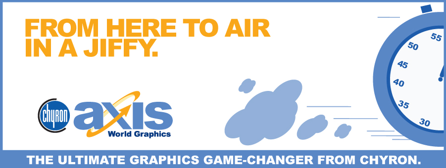 Chyron Corporation supplies graphics hardware, software, and workflow solutions to the television/multimedia industries worldwide. Chyron offers AXIS Graphics online content creation software, HD/SD switchable on-air graphics systems, clip servers, channel branding and telestration systems, graphic asset management with XMP integration solutions, and the WAPSTR mobile phone newsgathering application; the graphics products are designed to provide broadcast-quality, real-time, HD/SD, 2D/3D, graphics creation and playout for television stations, networks, video production, and post-production markets.
