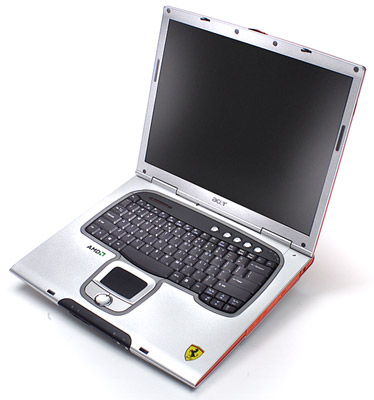 The Acer Ferrari 3000 comes with AMD Athlon XP-M processor at available in 2500+ and higher processor, memory upgradeable up to 2 GB with 2 slots (Only one slot for user accessible), high-capacity enhanced-IDE hard disk, li-ion main battery pack, Microsoft Windows XP operating system, a Thin-Film Transistor (TFT) liquid crystal display (LCD) displaying 32-bit high color up to 1400 x 1050 Super eXtended Graphics Array (SXGA+) resolution for 15.1”.