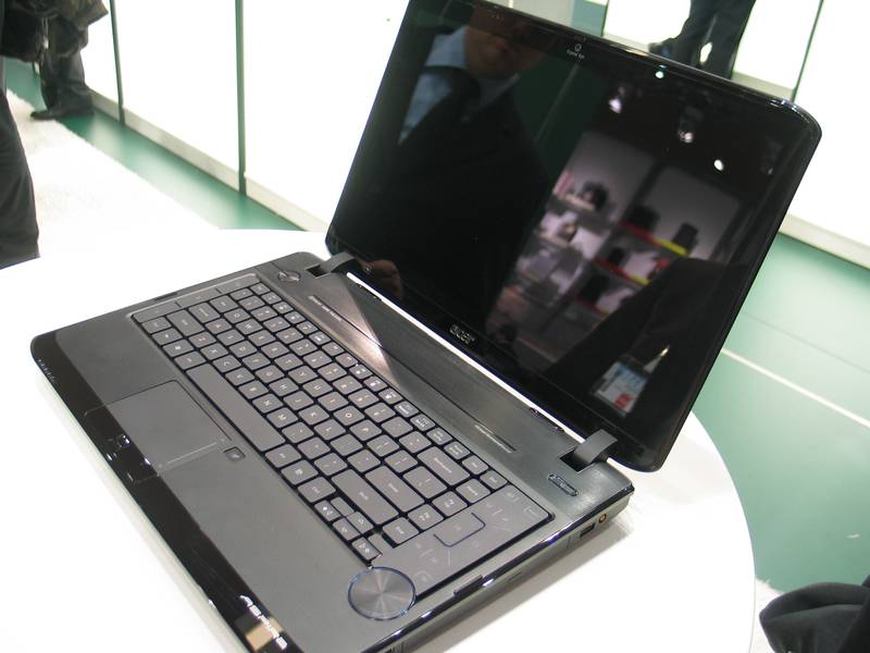 The new Acer Aspire 5935 is a 15.6-inch display laptop and the new Acer Aspire 8935 is a 18.4-inch display laptop. Both support up to 4GB DDR3 memory, biometric fingerprinting, 802.11 b/g, Bluetooth 2.0, and optional WiMAX.