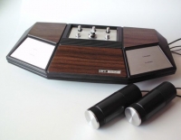 The APF TV Fun brand (stylized as aPF tv fun on its logo) is a series of dedicated home video game consoles manufactured by APF Electronics Inc. and built in Japan starting in 1976. The Model 442 features five games: Tennis/Ping Pong, Hockey, Football, Singles Handball, and Squash. The 442 provides an automatic serve function and offers two different skill settings (amateur and professional) that adjust paddle size, ball speed, and angle of deflection. Digital scoring up to 15 points appears on screen. The 442 can be powered by an AC adapter or by using six C size batteries.