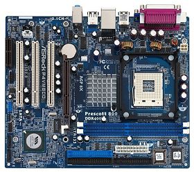 The asrock p4vm800 is an excellent motherboard extremely reliable and has good features.It is the p4 478 format and takes the prescott cpu,s including the 533 fsb version if you flash the bios through windows with the easy to use update from asrocks site.The board also has support for SATA as well as IDE drives and also has an 8x AGP slot as well as onboard video.