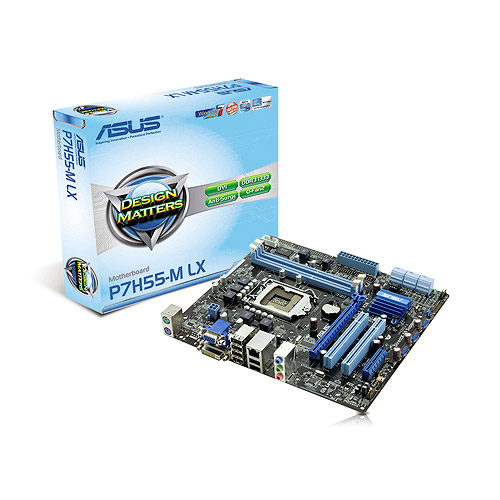 The Asus P7H55-M LX Motherboard features Intel's H55 chipset supporting LGA 1156 processors. DDR3 Dual-channel Memory Architecture at speeds up to 2133MHz offer exceptional performance to gamers and enthusiasts. With the Asus P7H55-M LX Motherboard, the Asus GPU Boost overclocks the integrated GPU in real time offering additional graphic performance. Asus TurboV and Turbo Key overclocks your system quickly and conveniently. Gigabit LAN offers full speed, high-bandwidth transfers. Asus EPU, a system level power saving technology, conserves energy by intelligently moderating power in real-time. Flexible Graphic Alternatives in a small form factor make P7H55-M LX ideal for home entertainment systems. So be sure to pick up the Asus P7H55-M LX Motherboard today!