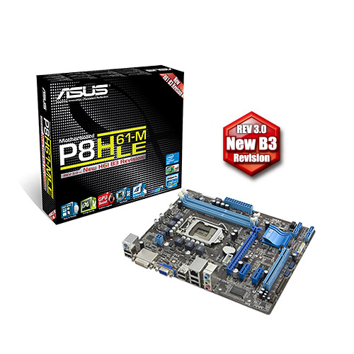A ‘B3 Revision’ sticker on the box proudly proclaims the P8H61-M LE is in full working order. Not that it makes any difference on this board, as it only has four SATA3 ports and no SATA2.