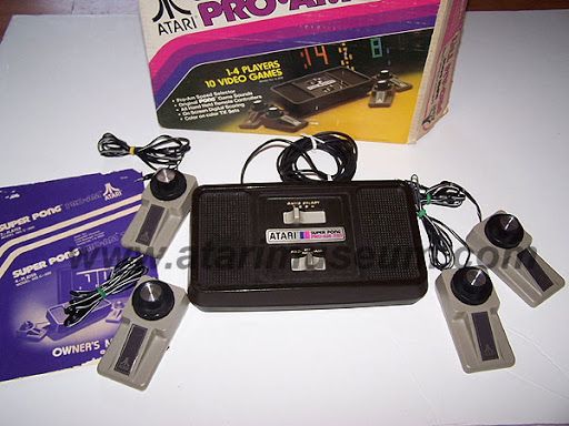Atari's last version of the Super Pong line. Super Pong Pro-Am (Professional - Amateur) Ten. Up to 4 players and up to 10 different games. With Pro or Am Difficulty Selector for beginners or more advanced game play, On-screen digital scoring, vivid color on color TV's and the original PONG sound you could play either Pro or Amateur version of Pong, Super Pong, Catch, Basketball and Handball. Atari's PONG home dedicated consoles just kept getting better and better, even if the "PONG" theme was getting very long in the tooth.