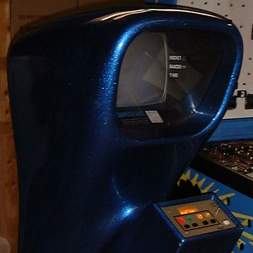 Computer Space is a space combat arcade game developed in 1971. Created by Nolan Bushnell and Ted Dabney in partnership as Syzygy Engineering, it was the first arcade video game as well as the first commercially available video game. Computer Space is a derivative of the 1962 computer game Spacewar!, possibly the first video game to spread to multiple computer installations. It features a rocket controlled by the player engaged in a missile battle with a pair of hardware-controlled flying saucers set against a starfield background. The goal is to score more hits than the enemy spaceships within a set time period, which awards a free round of gameplay. The game is enclosed in a custom fiberglass cabinet, which Bushnell designed to look futuristic.