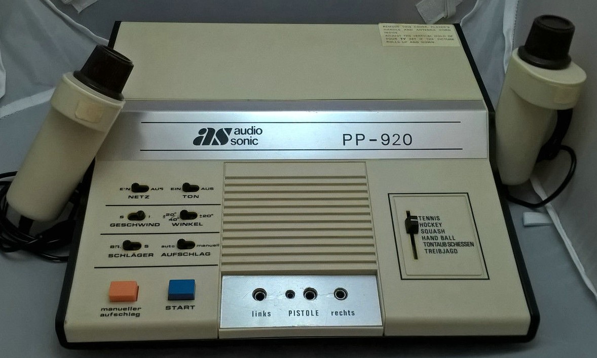 By admin , 20 March 2021 PP-920 Video Game Description Audio Sonic PP-920 (920B) is a pong console made by Audio Sonic. It has a different case from 920C and 920D. Wikipedia 20th Century Video Games Audio Sonic Year First Manufactured 1978