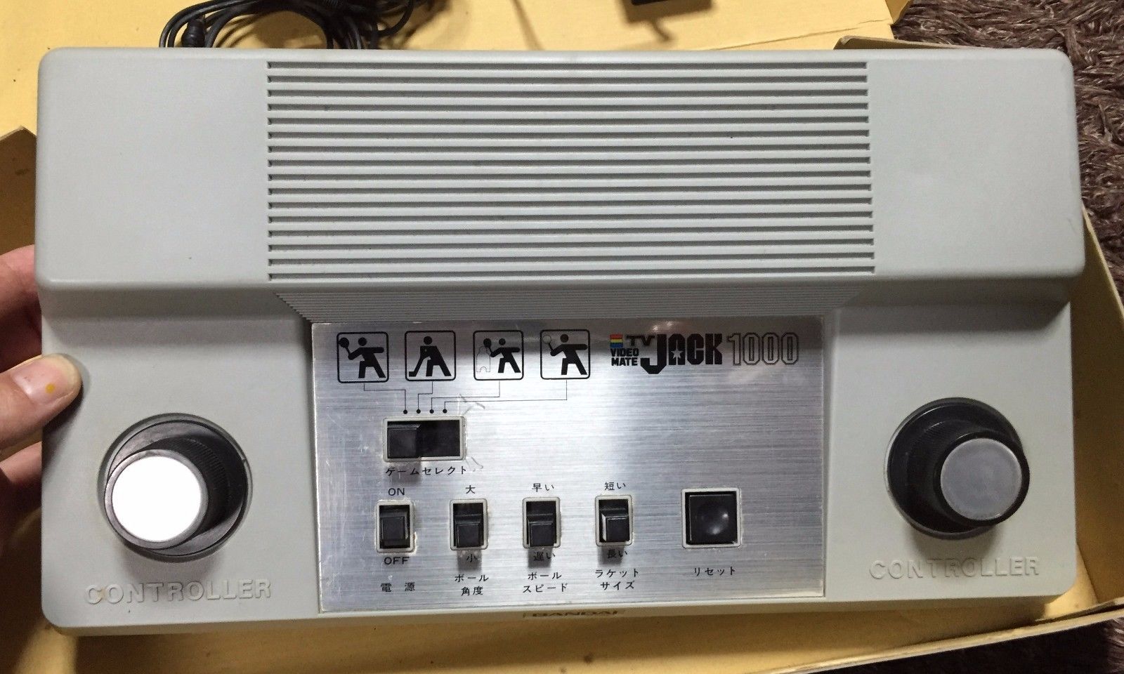 TV Jack Series is a series of home consoles released by Bandai in Japan based on the Pong game. TV Jack 1000 released in 1977 and had 4 built-in colored games: Hockey, Practice, Racquetball and Tennis. The controllers are essentially two paddles attached on the console.