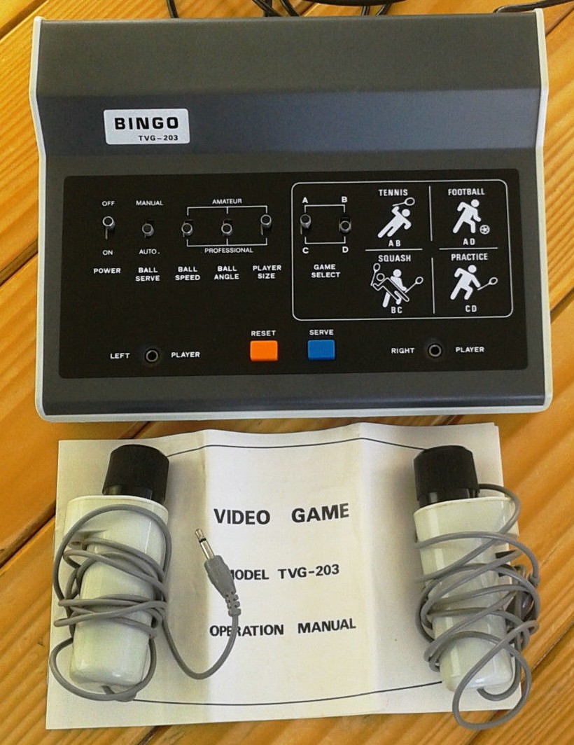 Bingo TVG-203 is a Pong type TV Games System released in 1977. It has four games: Tennis, Football, Squash, and Practice mode.