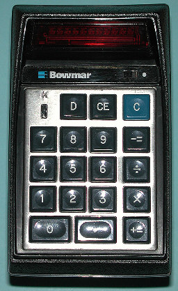 The Bowmar 901D was the first "True-Pocket-Size" calculator using a 10 digit display based on components of the Texas Instruments company. This calculators uses both the original Klixon keypad and the TMS0107 Integrated circuit.