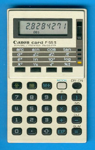 By admin , 15 December 2015 F-55S (silver) Calculator Description Nothing else than a styling variation of the black coloured Palmtronic F-55S. Canon Inc. Canon Inc. Year First Manufactured 1979