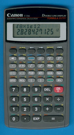Running Mike Sebastian's "Calculator forensics" reveals the Canon F-720 as one of the "new-generation" calculators using binary arithmetic instead of the common BCD (Binary Coded Decimal) arithmetic to perform internal calculations. According to the manual this calculator uses up to 24 digits of precision and we get indeed the unbelievable result of 9.00000000005281641187... running the forensics test.