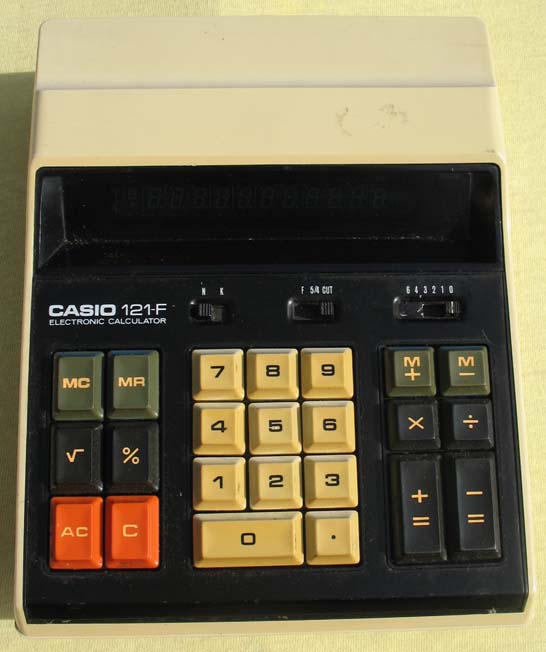 The Casio 121-F is a continuation of a long line of Casio's 121-series of calculators. The series started in the late 1960's, with the Casio 121-A, a rather primitive 12-digit, four function desktop calculator using Nixie tube displays and utilizing small and medium scale integrated circuit logic. The series was later updated with the debut of the Casio 121-B (also marketed as the Sperry Remington Lektronic.