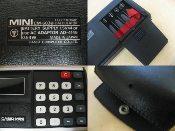 The Casio Mini CM-603A CM-603A is an arithmetic calculator with 6 digits precision and algebraic logic. It has 5 functions, 18 keys and a VFD (vacuum fluorescent) display. The power source is 4xAA batteries. The calculator was manufactured in Japan.