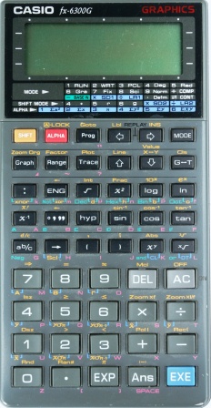 The Casio fx-6300G is a graphing calculator with 10 digits precision and formula input logic. It has 400 functions, 50 keys and an LCD (liquid crystal) display. The power source is 2xCR2032. The calculator was manufactured in Thailand.