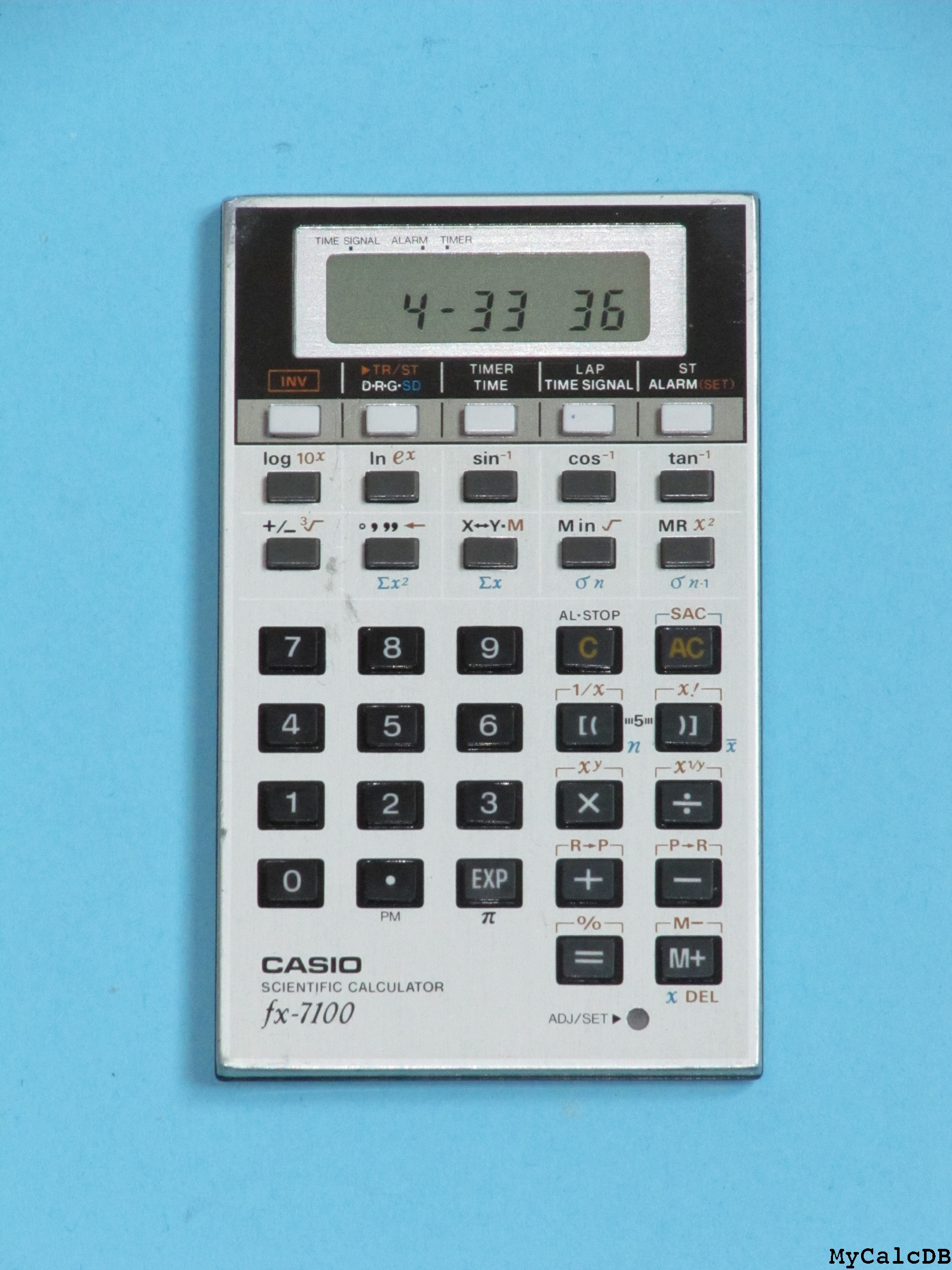Casio FX-7100 is a scientific calculator introduced in the year 1980 with an LCD display. Casio FX-7100 was made in Japan.