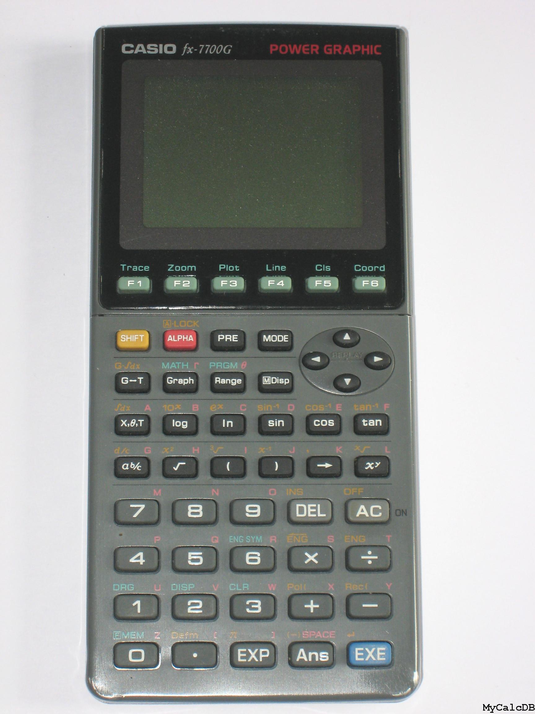 The Casio fx-7700G POWER GRAPHIC is a graphing calculator with 10 digits precision and formula input logic. It has an unknown number of functions, 50 keys and an LCD (liquid crystal) display. The power source is 4x2032 3V cell. The calculator was manufactured in Japan.