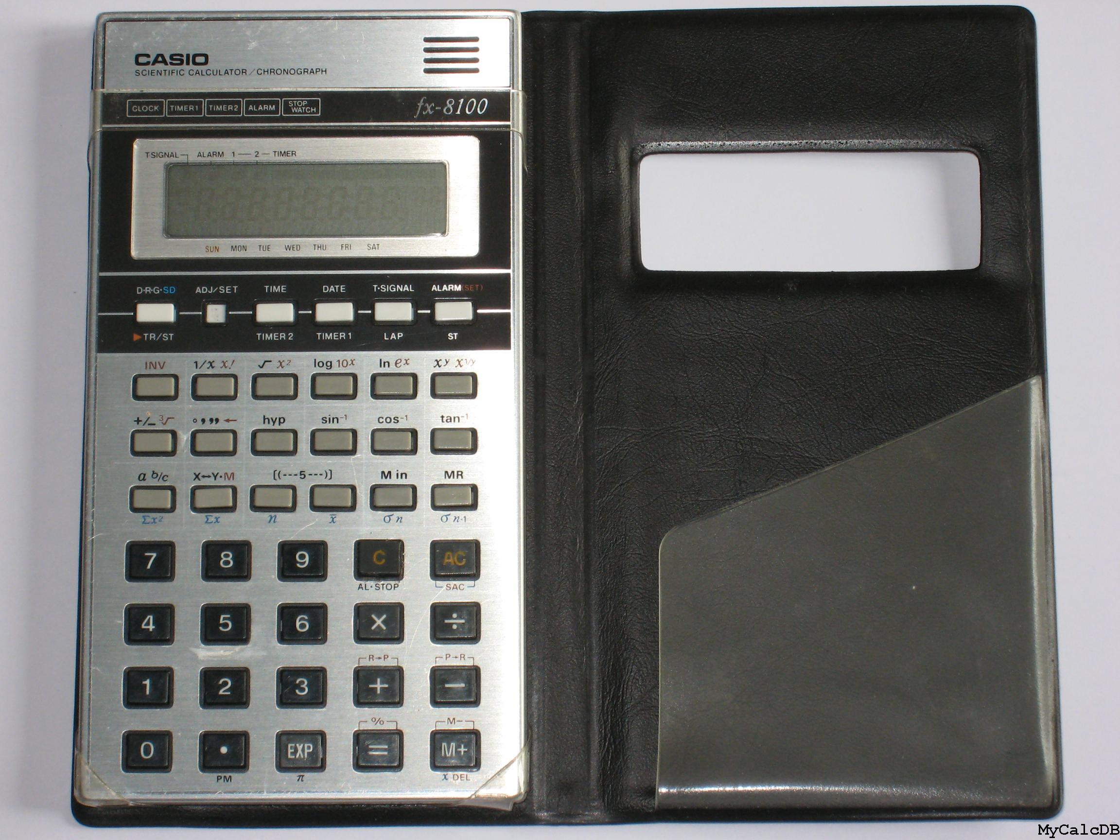 The Casio fx-8100 is a scientific calculator with 8 digits precision and algebraic logic. It has an unknown number of functions, 44 keys and an LCD (liquid crystal) display. The power source is 2xSR1130. The calculator was manufactured in Japan.