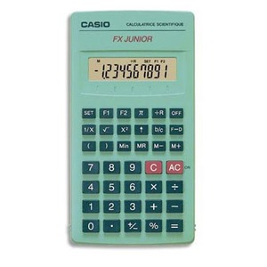 The Casio fx-JUNIOR SCIENTIFIC CALCULATOR is an arithmetic calculator with 8 digits precision and algebraic logic. It has 8 functions, 26 keys and an LCD (liquid crystal) display. The power source is 2xAA batteries. The calculator was manufactured in Japan.
