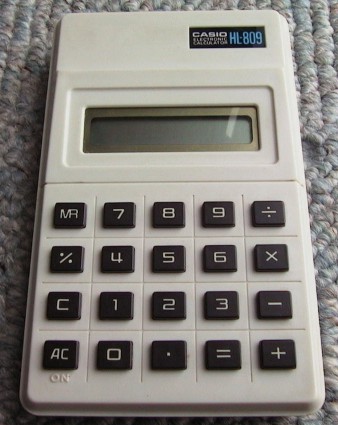 The Casio HL-809 is an arithmetic calculator with 8 digits precision and algebraic logic. It has 5 functions, 20 keys and an LCD (liquid crystal) display. The power source is 2xAA batteries.