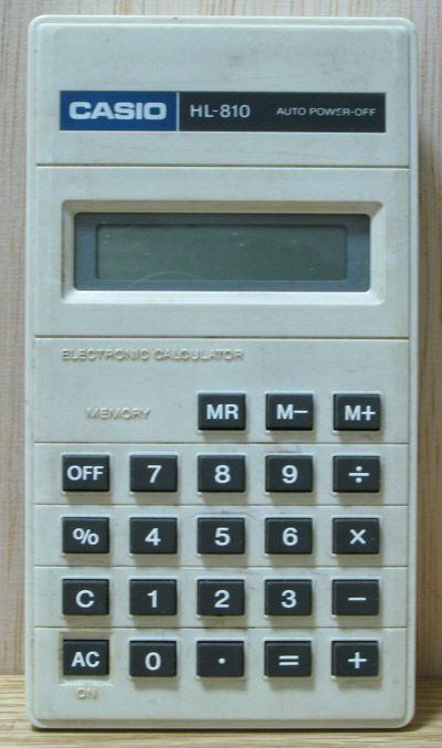 The Casio HL-810 is an arithmetic calculator with 8 digits precision and algebraic logic. It has 5 functions, 23 keys and an LCD (liquid crystal) display. The power source is 2xAA batteries. The calculator was manufactured in Japan.