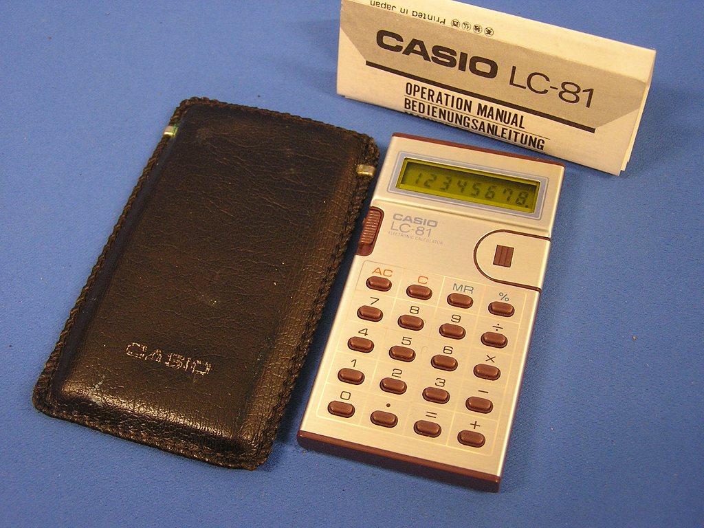 The Casio LC-81 is an arithmetic calculator with 8 digits precision and algebraic logic. It has 5 functions, 20 keys and one of the early LCD (liquid crystal) displays which incorporated a yellow filter. The calculator was manufactured in Japan.