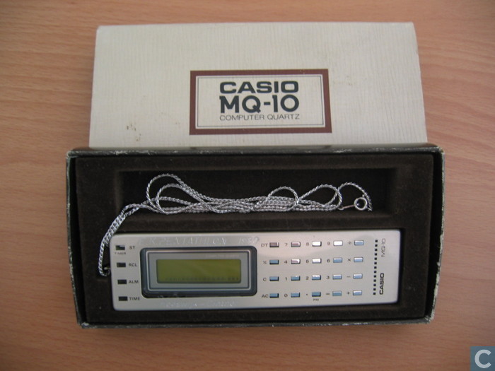 The Casio MQ-10 is an arithmetic calculator with 8 digits precision and algebraic logic. It has 5 functions, 24 keys and one of the early LCD (liquid crystal) displays which incorporated a yellow filter. The power source is 2xLR44. The calculator was manufactured in Japan.