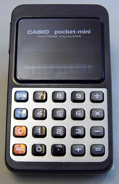 The Casio pocket-mini P-811 P-811 is an arithmetic calculator with 8 digits precision and algebraic logic. It has 5 functions, 20 keys and a VFD (vacuum fluorescent) display. The power source is 2xAA batteries. The calculator was manufactured in Japan.
