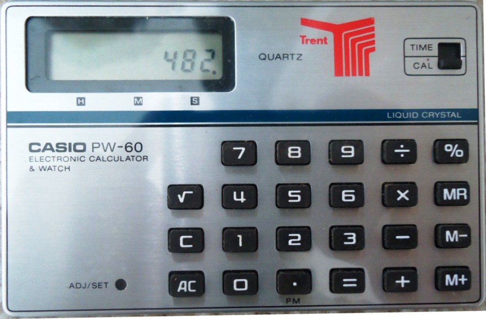 The Casio PW-60 is an arithmetic calculator with 8 digits precision and algebraic logic. It has 6 functions, 20 keys and an LCD (liquid crystal) display. The power source is 3V cell. The calculator was manufactured in Japan.