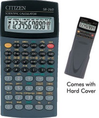 The Citizen SRP-260 is a programmable calculator with 8 digits precision and algebraic logic. It has an unknown number of functions, unknown keys and an LCD (liquid crystal) display.