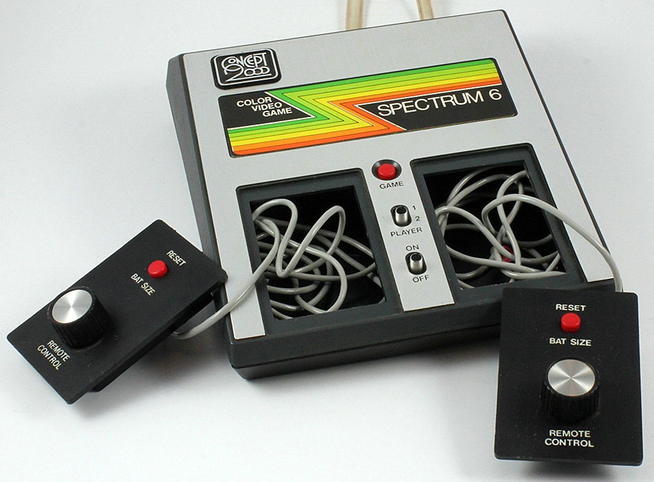 Concept 2000 Spectrum 6 is a dedicated console playing three different Pong variants. The games can be played with one or two players. The console uses the MM-57105N dedicated pong chip which features the following games: Tennis, Hockey, Handball. All games are in color and there are no further options.