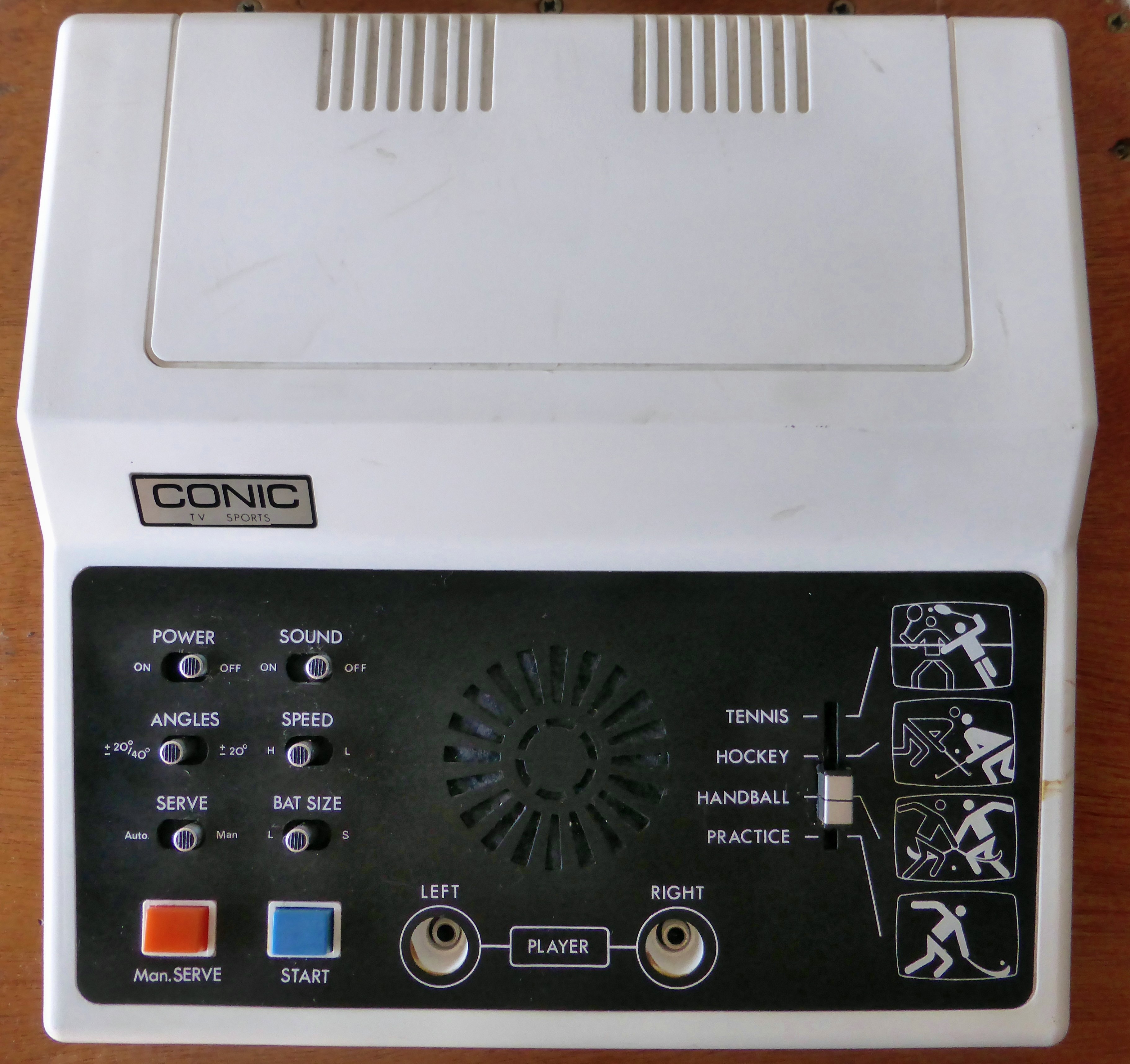 Conic TV Sports TG-621is a classic pong system which uses the GI AY-3-8500 chip, thus playing the 4 basic pong games (without the two shooting games).