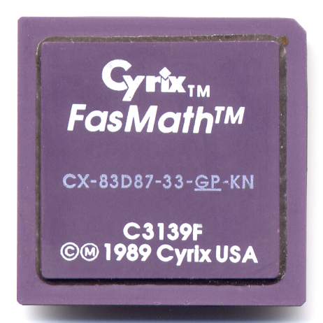 The CX-83D87 was introduced in 1989. It is the fastest 387-compatible coprocessor and provides up to 50% more performance than the Intel 387DX. The 83D87 also offers the most accurate transcendental functions of all coprocessors. It is the 387 clone with the highest degree of compatibility to the Intel 387DX. Unlike the Intel 387DX, the 83D87 (and all other 387-compatible chips as well) does not support asynchronous operation of CPU and coprocessor. To reduce power consumption the 83D87 features advanced power saving features. Those portions of the coprocessor that are not needed are automatically shut down. If no coprocessor instructions are being executed, all parts except the bus interface unit are shut down.