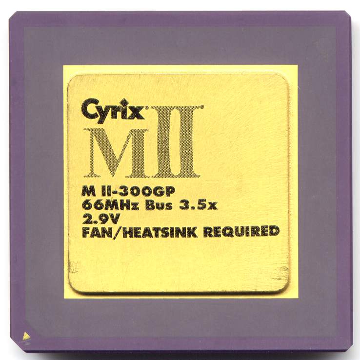 After Cyrix was purchased by National Semiconductor in 1997 they terminated their foundry agreement with IBM. National fabricated their own chips and the 6x86MX was re-named MII. Compared to early 6x86MX CPUs the MII had some enhancements to its processor core. Heat output was reduced allowing it to rise to clock speeds over 220MHz. The MII also required non-standard bus speeds at 75 or 83MHz on socket 7 boards and therefore had some troubles with stability.