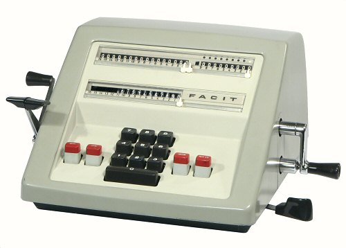 Model CM2-16 from the 1960s was the first Facit calculator to use the now-familiar ten-key numeric keypad in place of the 2-row "Dalton" keyboard. The keypad mechanism achieves a very light touch by eliminating (almost) all spring tension on the downstroke, and using the rotor escapement and return spring to provide the restoring force for the upstroke.
