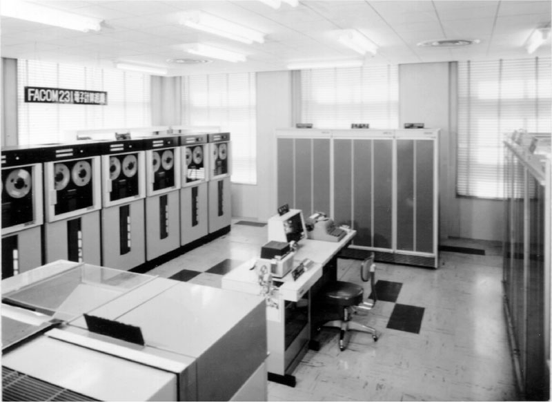 This was a transistor-based small general-purpose computer, developed by Fuji Tsushinki Manufacturing Corporation (currently Fujitsu) in March 1963. In contrast with previous small computers, which combined a 1-word calculation system with a drum memory system, this machine featured 1-digit calculation (using a variable word length system) and a magnetic core memory (employing 50mil magnetic core memory with a cycle time of 10microseconds). All data was handled in single-digit form, so the arithmetic logic unit and controllers were simplified and price was reduced. The machine achieved a 520/670microseconds arithmetic speed for addition/subtraction (decimal, 10-digit) using a 200KHz basic clock cycle (which was indicated at the time as "200kc"). A variety of configurations could be achieved to suit the application by using the building block structure -- from the paper tape based basic configuration with a memory capacity of 4 Kdigit, to the top-end configuration with devices like magnetic tape and magnetic drum connected, and a maximum memory capacity of 32 Kdigit.