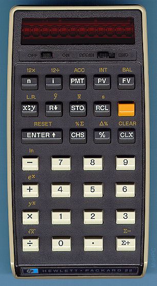 The HP-22 was the first business member of the 20 series. It was originally intended to be an HP-70 plus but grew beyond its original design goals to include a large array of additional functions. In some ways, the HP-22 exceeded the capabilities of the HP-80.