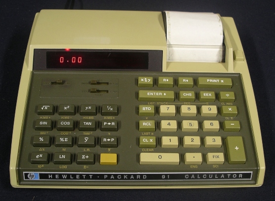 The HP-91 was HP's first battery powered printing calculator. The printer was a moving head thermal design that printed from about 1 to 1.5 lines per second. This relatively low speed was designed to conserve battery power. Thermal printing was chosen because it was small, light an quiet.