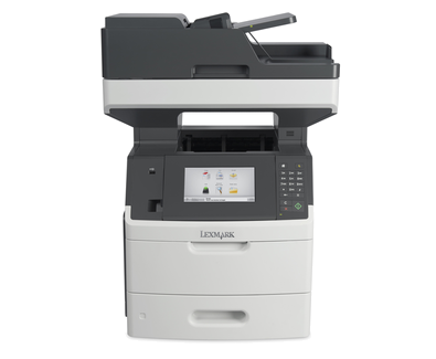 The Lexmark MX710de MFP with a customizable e-Task touch screen provides print, copy, fax, email and scan functions. Included are 650-sheet standard input and 512MB of standard memory.
