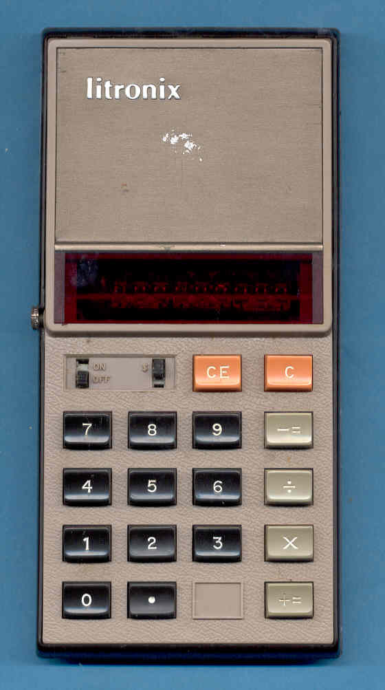 The Litronix 1100A is an arithmetic calculator with 8 digits precision and algebraic logic. It has 4 functions, 17 keys and an LED (light-emitting diode) display, typical of calculators of this era. The power source is 4xAA batteries.