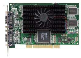 The Matrox G450x4 MMS is a half length PCI quad monitor graphics card with dedicated chips, driving each monitor at independent resolutions.