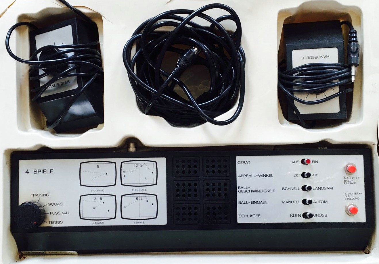 The Tele-Ball III is thus very similar to the original Tele-Ball or Tele-Ball II, offering only the 4 classic pong games in black & white. As usual with MBO, the different systems are quite different cosmetically, but very close in term of functionality.