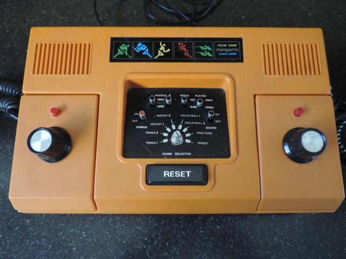 The Miragame GMC-802 is one of the late Pong consoles built so it is quite complete and provides everything a player needs to play Pong. You have six games and using the Motorola M-588135 chipset makes it possible to choose a different bat size for each player. The system even has an on / off sound switch.