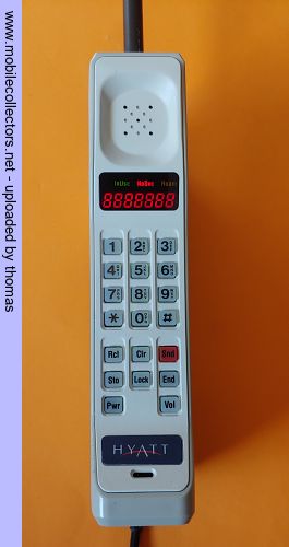 Motorola DynaTAC 8000M HYATT is a transportable mobile phone released by Motorola in 1992. Special edition, made for the HYATT Hotel Group. This device is very rare, because only a very small edition was made. Mode no.:F09LFD8458D