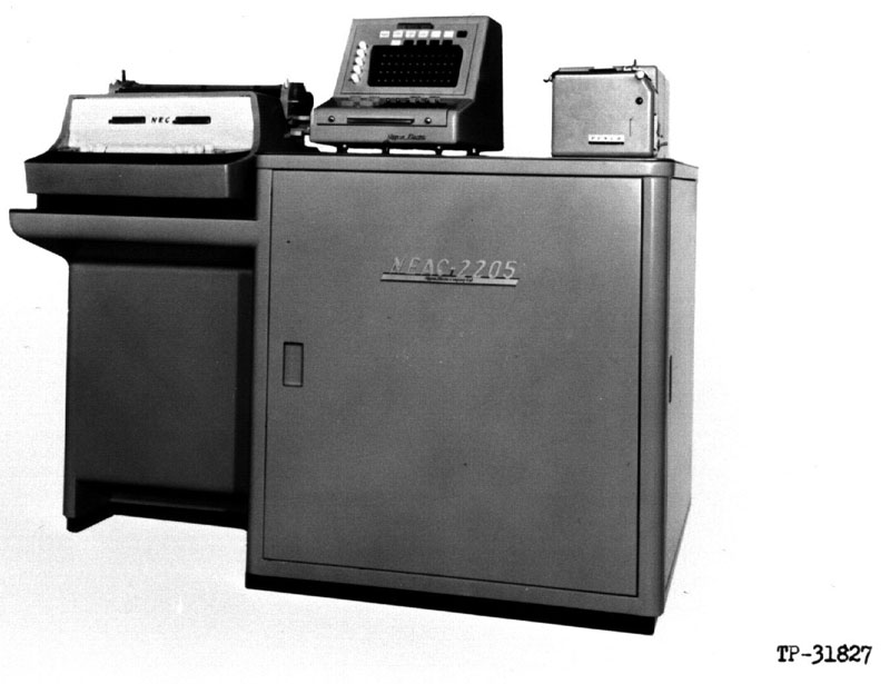 In April 1961, NEC announced the NEAC-2205 transistor-based computer. This machine was built based on the technology of the NEAC-2203, and was designed for greater compactness and lower cost. More specifically, it was a general-purpose digital computer designed for small- and medium-scale business data processing. For main memory, it used a magnetic drum with a capacity of 3,000 words. Access time was long (12 miliseconds), but a loop memory track was provided to compensate for this. Transistors and diodes were used for circuitry throughout the system, and this was useful in reducing power consumption, achieving greater compactness and simplifying maintenance. Small and mid-size firms were the primary target users, but at the time such firms could not afford to adopt computers yet, and the system attracted little notice.
