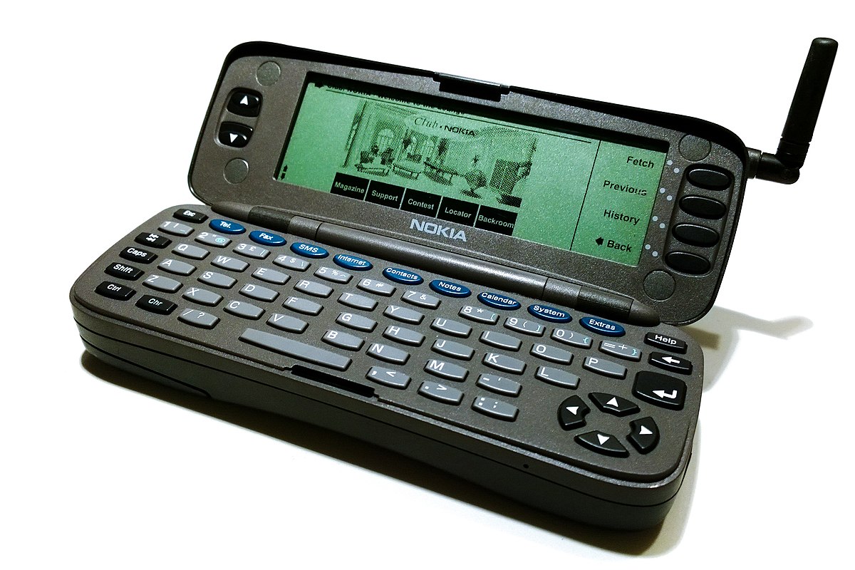The Nokia Communicator is a brand name for a series of business-optimized smartphones marketed by Nokia Corporation, all of which appear as normal (if large) phones on the outside, and open in clamshell format to access a QWERTY keyboard and an LCD screen nearly the size of the device footprint.