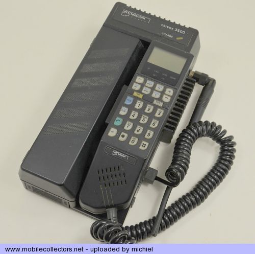 This NMT 900 telephone was marketed in the Netherlands by PTT under the name Carvox 3500. The device was launched in 1989 and was a widely used telephone in the Netherlands. The transmission power is switchable between 1.25 W and 7.5 W; the device has a memory for 98 telephone numbers.