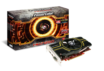 The Powercolor Radeon HD7850 2GB features a core clock of 860MHz and a 4800MHz (effective) memory clock with a 256-bit GDDR5 bus. Equipped with a powerful copper heat pipe aftermarket cooler for excellent thermal management under load. Model code: AX7850 2GBD5-DH. Backed by a 2 year warranty.