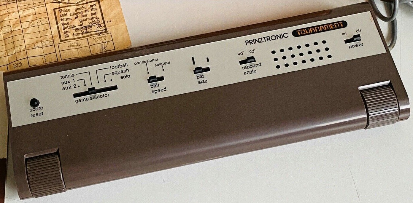 Prinztronic Tournament (VM-8) was basically a rebranded Videomaster Superscore VM-8 at the retail chain Dixons in Britain. They are almost identical, the difference being that this system has a switch for rebound angle and the Video Master Superscore has a switch for sound.