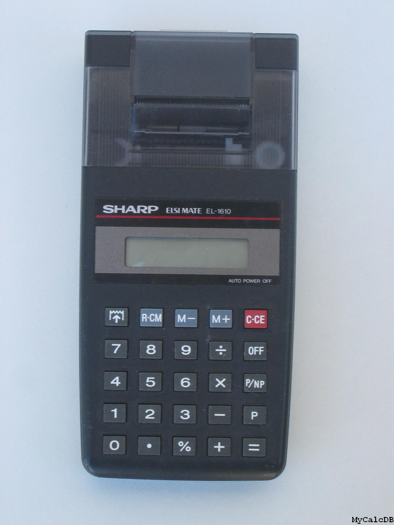 The Sharp EL-1610 is an arithmetic calculator with 10 digits precision and algebraic logic. It has 5 functions, 15 keys and an LCD (liquid crystal) display. The power source is 4xAA batteries.