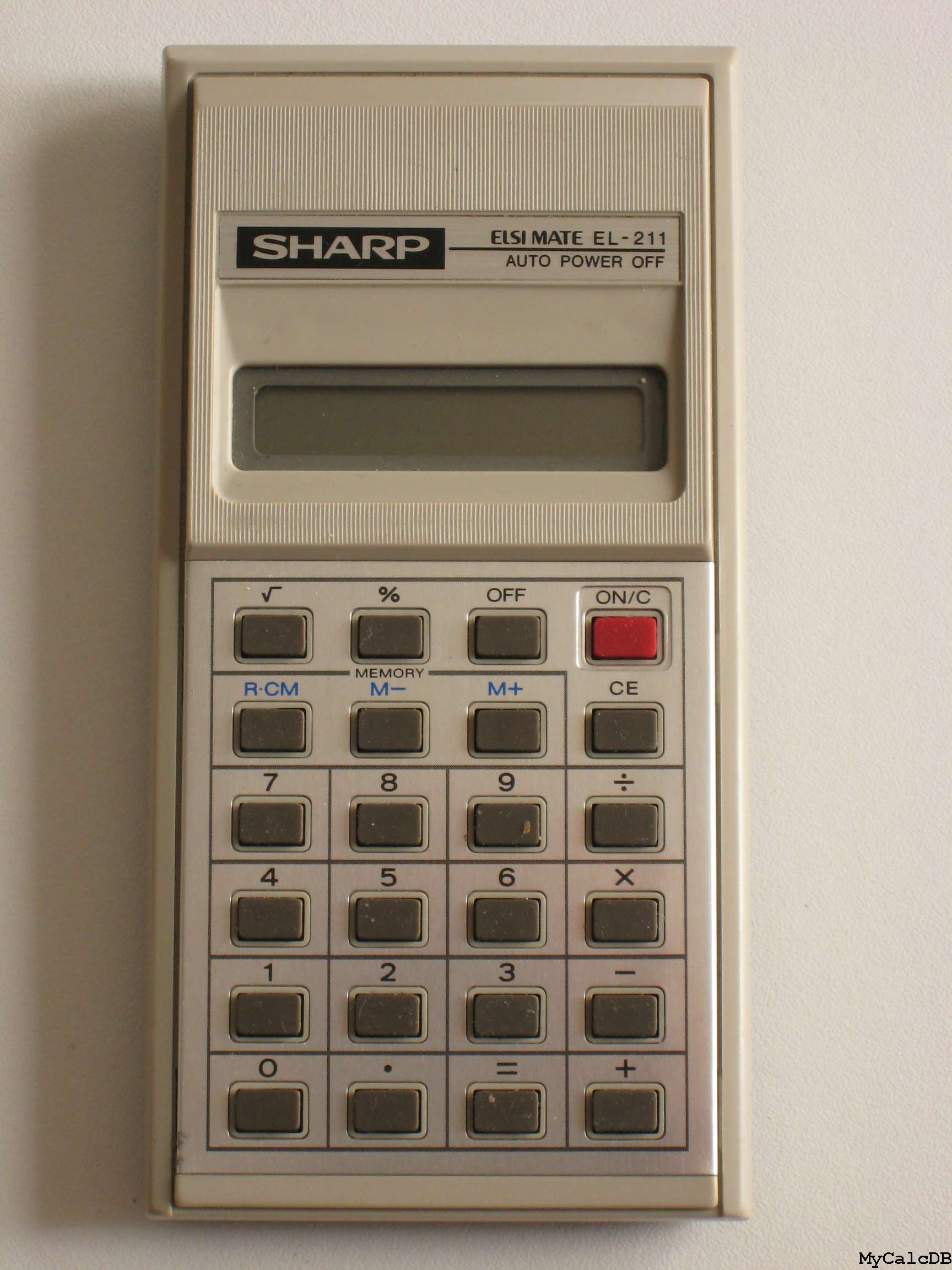 The Sharp EL-211 ELSIMATE is an arithmetic calculator with 8 digits precision and algebraic logic. It has 6 functions, 24 keys and an LCD (liquid crystal) display. The power source is 2xAA batteries. The calculator was manufactured in Japan.